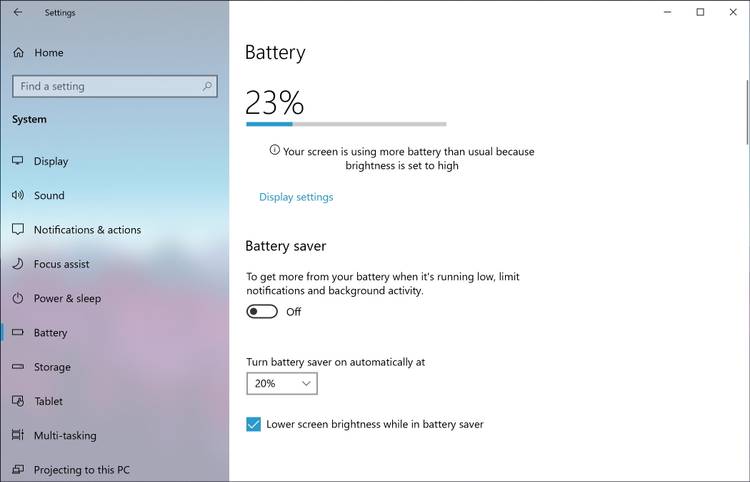 - Marque Brillo de pantalla más bajo mientras está en ahorro de batería . Desafortunadamente, no es posible establecer qué nivel de brillo se usa.